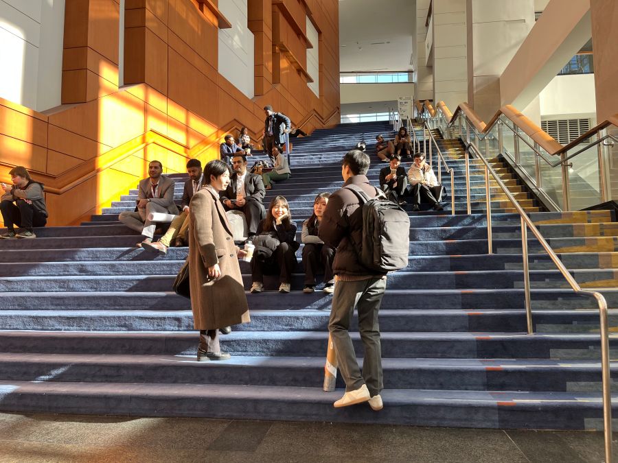 - Staircases are welcoming places for attendees to chat and check their phones. (Mary Lord, TRB Staff)